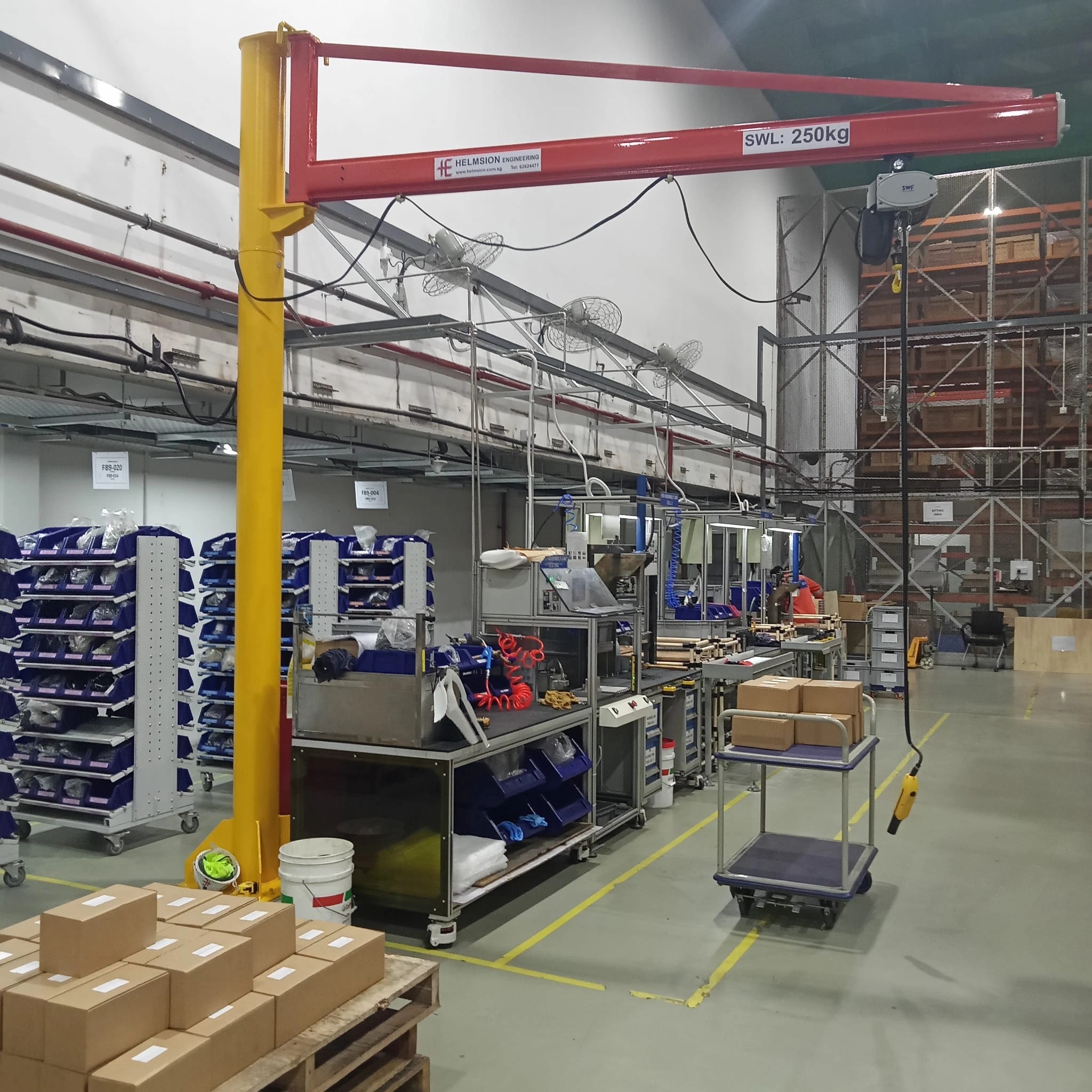 Helmsion Slewing Jib Crane Systems provide a compact and versatile lifting solution for local workstation handling. Ideal for loading, unloading, or assembly operations, they offer wide working coverage with smooth and controlled slewing motion.