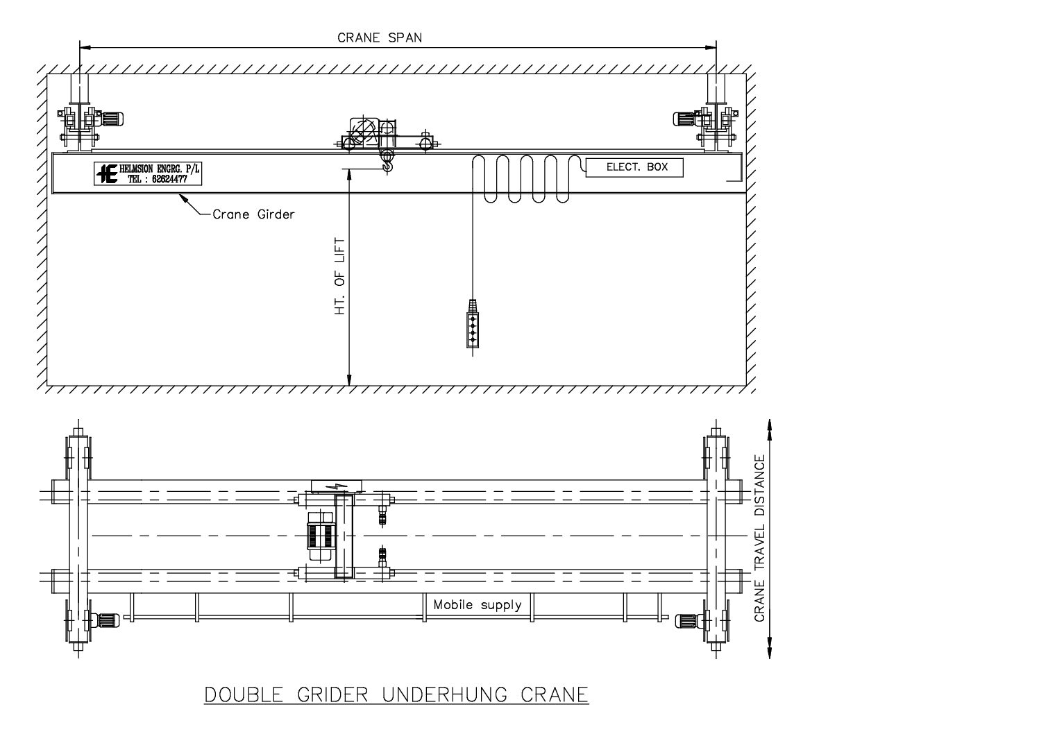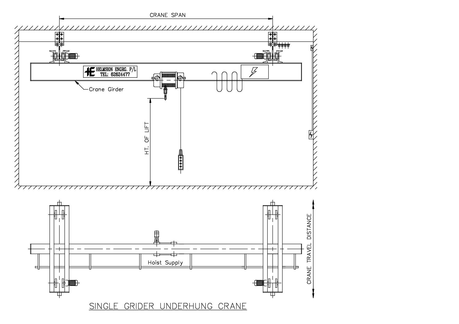 Helmsion Single Girder Underhung Crane Systems are an ideal lifting solution for facilities with limited headroom or where the crane must be suspended from the building structure. Designed for smooth operation and efficient space utilization, these cranes provide reliable performance and precise load handling across the working area.